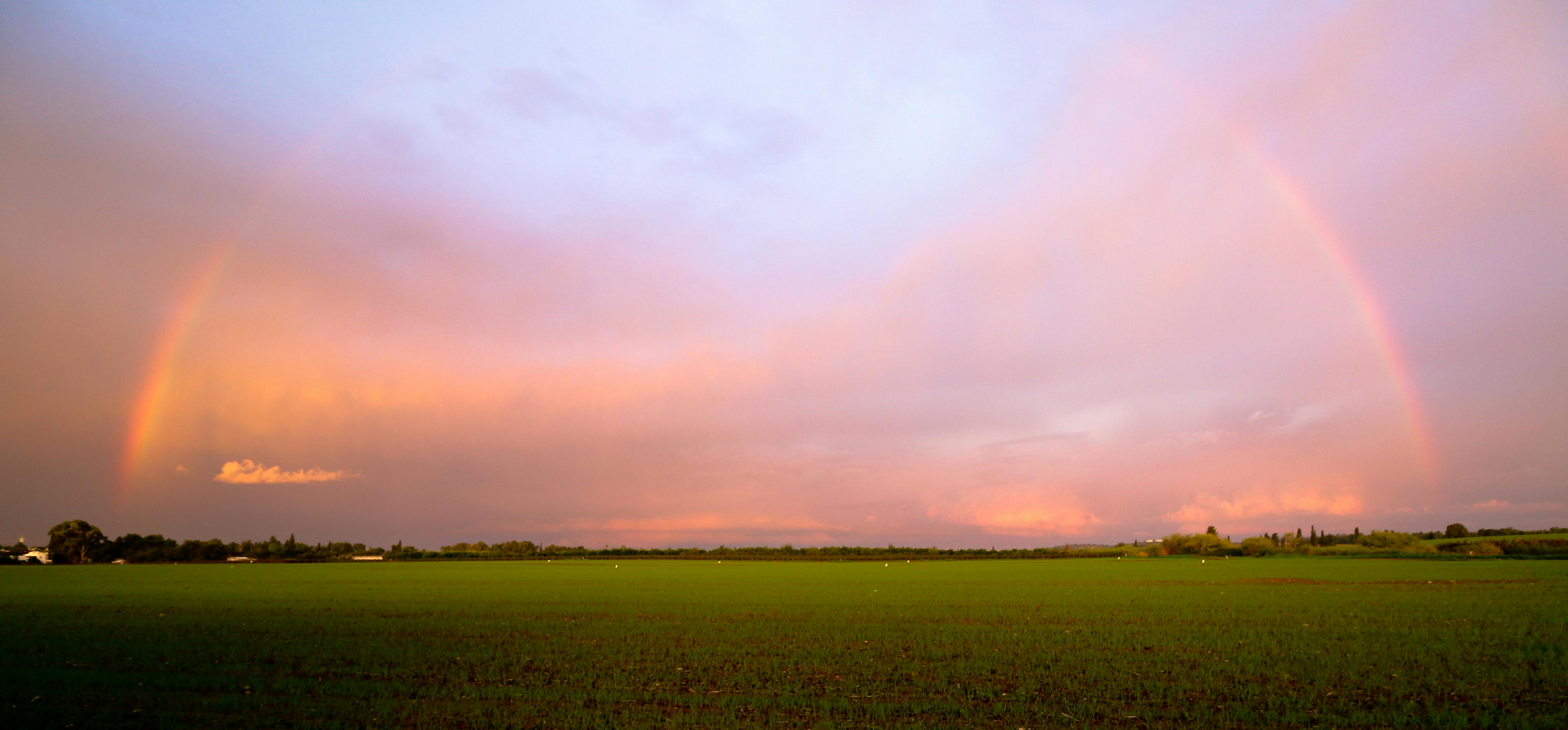 #קשת #שדה #טבע #שמים #עננים #נוף #ירוק #חורף #שקיעה #צבעים #אופק #מרחב